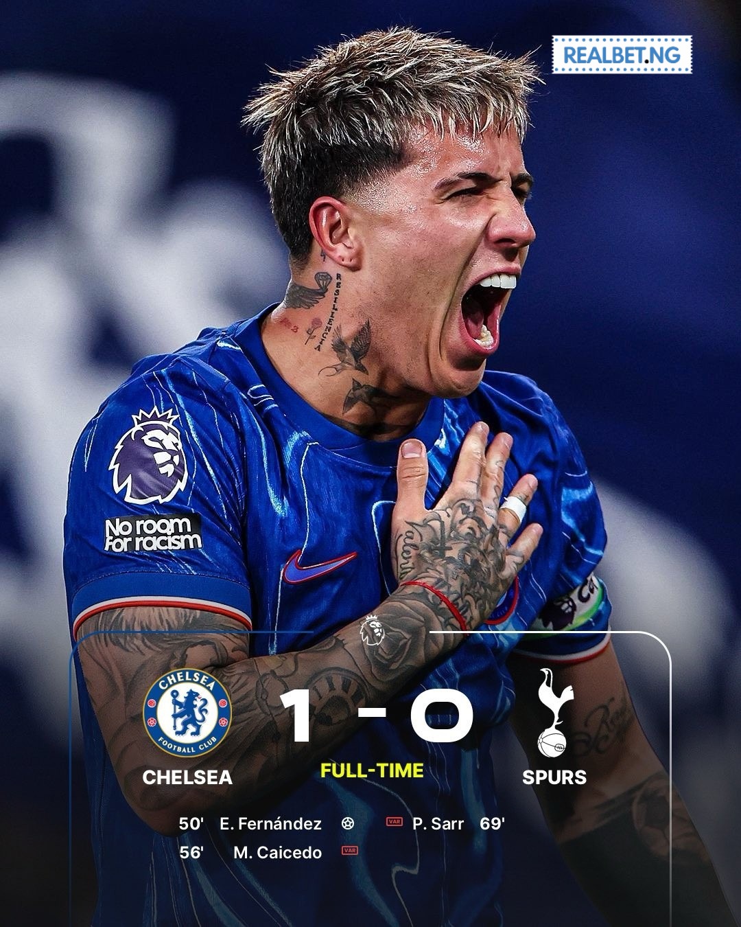 Chelsea beat Tottenham 1-0, with Enzo Fernández scoring the only goal. This win helps Chelsea’s top-four push. Tottenham’s manager Ange Postecoglou is under fire after his fourth straight league loss to Chelsea. Moisés Caicedo shone in midfield, winning 4/4 tackles and 8/9 ground duels.