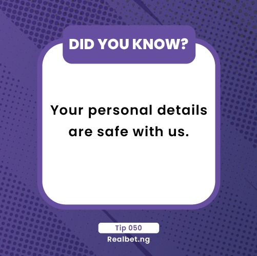 Hello Real Bettors, Did you know that all your personal information are safe and secured with us. Your Data is not in anyway compromised. Realbet Nigeria prioritize the safety of your information.