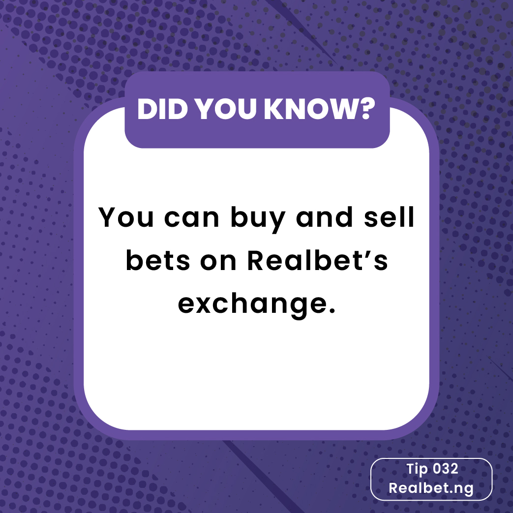 On Realbet.ng, you can buy and sell bets through it’s exchange services. This gives you control over you bets and increase your probability of Winning.