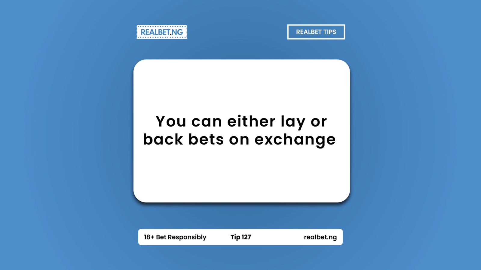 You can back and lay bets on the realbet betting exchange – exchange.realbet.ng