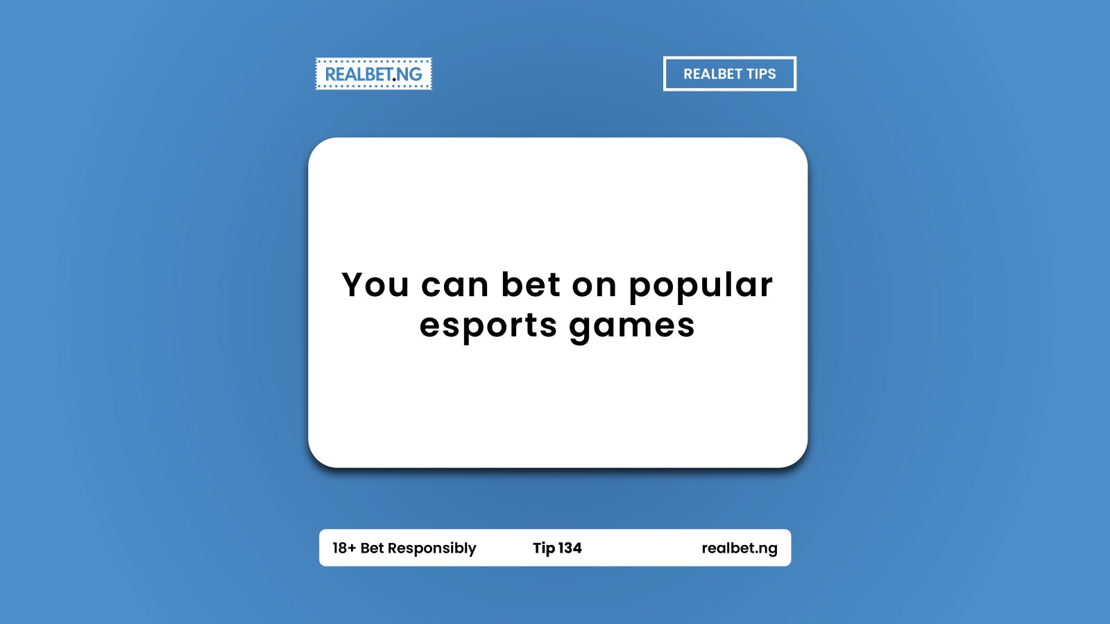 You can bet on your popular esports games on both the sportsbook and the exchange. Bet against the house and also bet against friends with realbet.ng