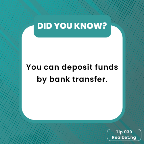 ByRealbetFebruary 17, 2025Hello Real Bettors, You can Deposit Funds into your wallet using Bank Transfer Payment Option.