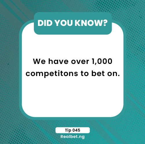ByRealbetFebruary 19, 2025Hello Real bettor, Did you know that you can place bets on over 1000+ competitions on realbet.ng All leagues and competitions are available...