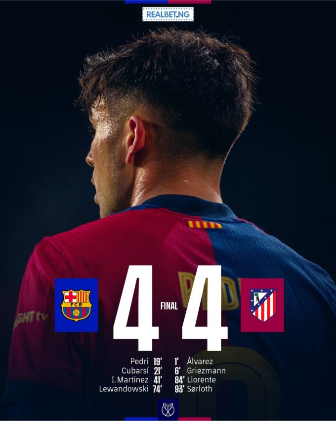 ByRealbetMarch 11, 2025Pedri Shines in Barcelona’s 4-4 against Atletico Madrid! Barcelona and Atletico Madrid played out a stunning 4-4 draw in the Copa del Rey...