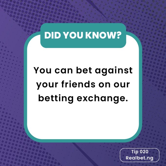 ByRealbetFebruary 1, 2025Hello Real Bettors, Did you know that you can bet against your friends and show them who is boss in the betting game....