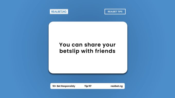 Hello Real Bettors, You can share all your bet slips with friends or family on realbet.ng using the social gambling feature. Ensure you...