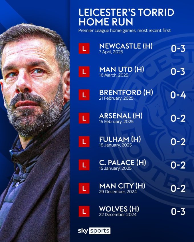 ByRealbetApril 10, 2025Leicester City’s struggles at the King Power Stadium have reached a grim milestone, with the team suffering eight consecutive Premier League home defeats...